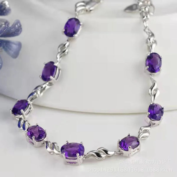 925 Sterling Silver Purple Crystal Amethyst Bracelet for Women