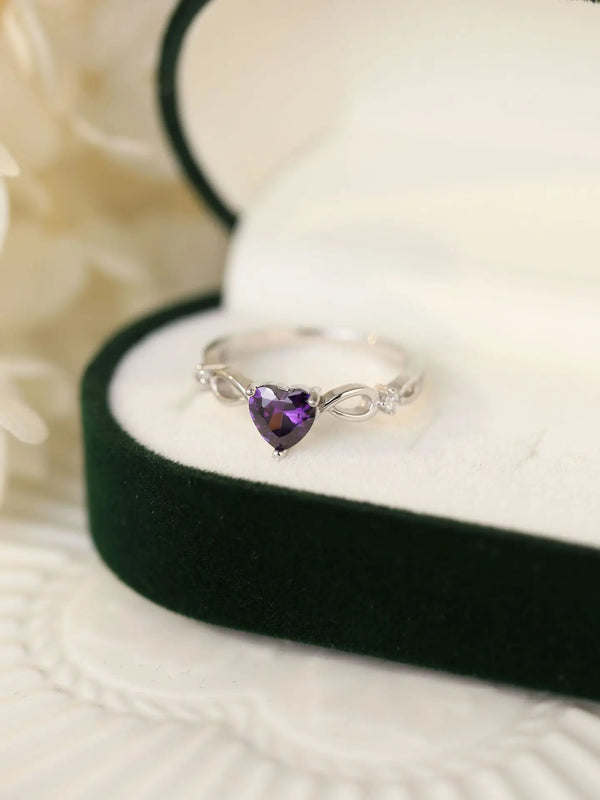 Sterling Silver Natural Amethyst Purple Heart Ring